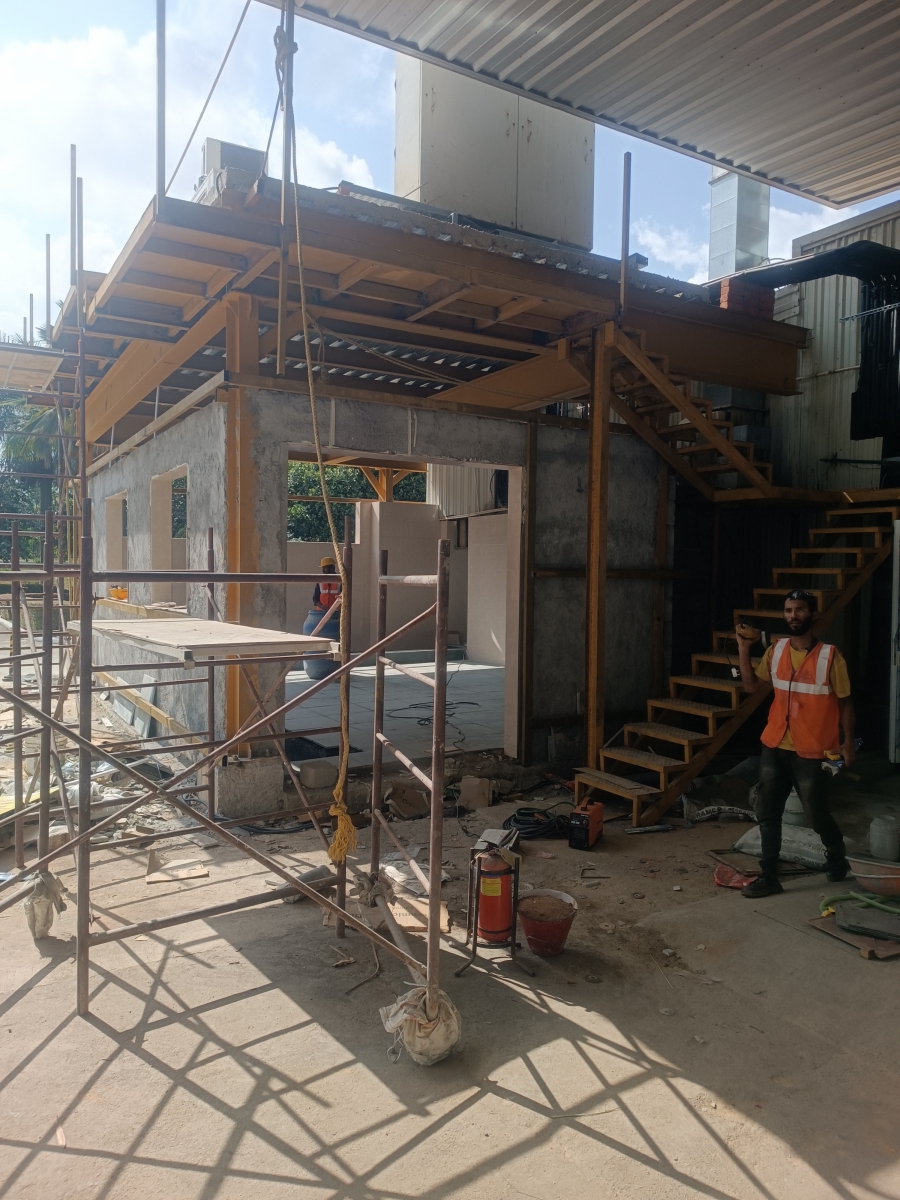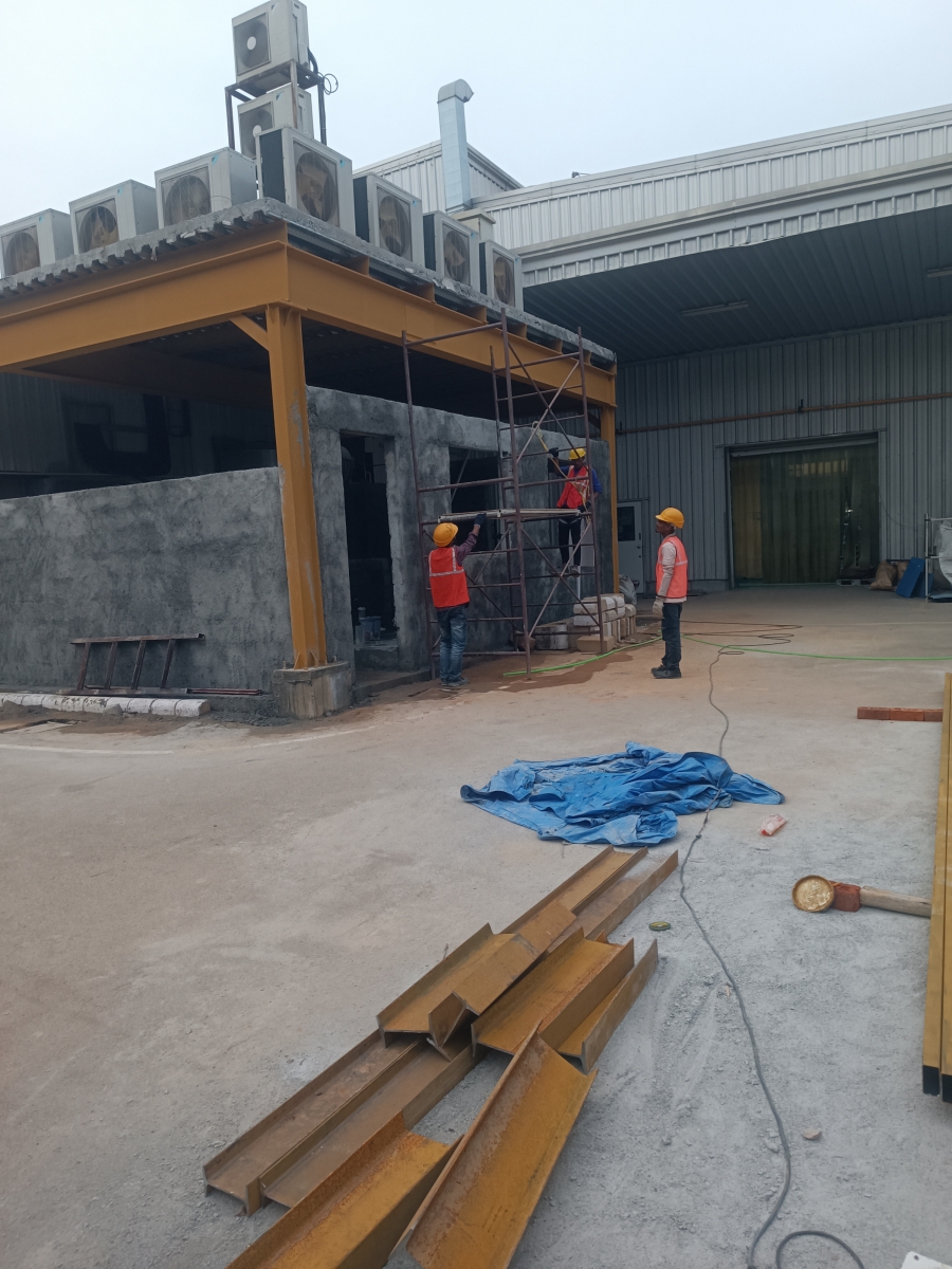 Steel Age Building System completed a comprehensive canteen renovation project for Tokai Rika Minda India Pvt. Ltd., located at Dobaspet, Bengaluru. The project involved structural, civil, and interior renovation of the existing canteen to enhance employee comfort, hygiene, and functionality. Major works included flooring upgrades, wall finishes, false ceiling installation, lighting improvements, and layout optimization to create a modern and efficient dining space. One of the key challenges faced during this project was the relocation of the working air conditioning units to the terrace of the canteen — a complex task requiring careful planning, reinforced structural support, and precise execution without disrupting ongoing factory operations. Through coordinated efforts and technical expertise, the Steel Age team successfully delivered the project on time and to high safety standards, reflecting our commitment to quality, innovation, and client satisfaction. Overcoming on-site challenges with smart engineering — delivering comfort and quality through every build.